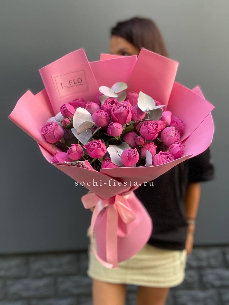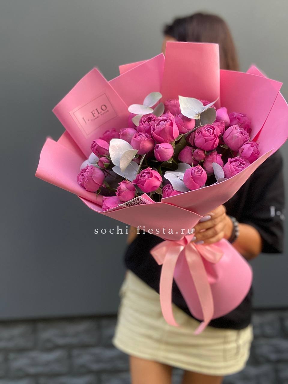 15 роз сорта джумилия, лента, дизайнерская упаковка.