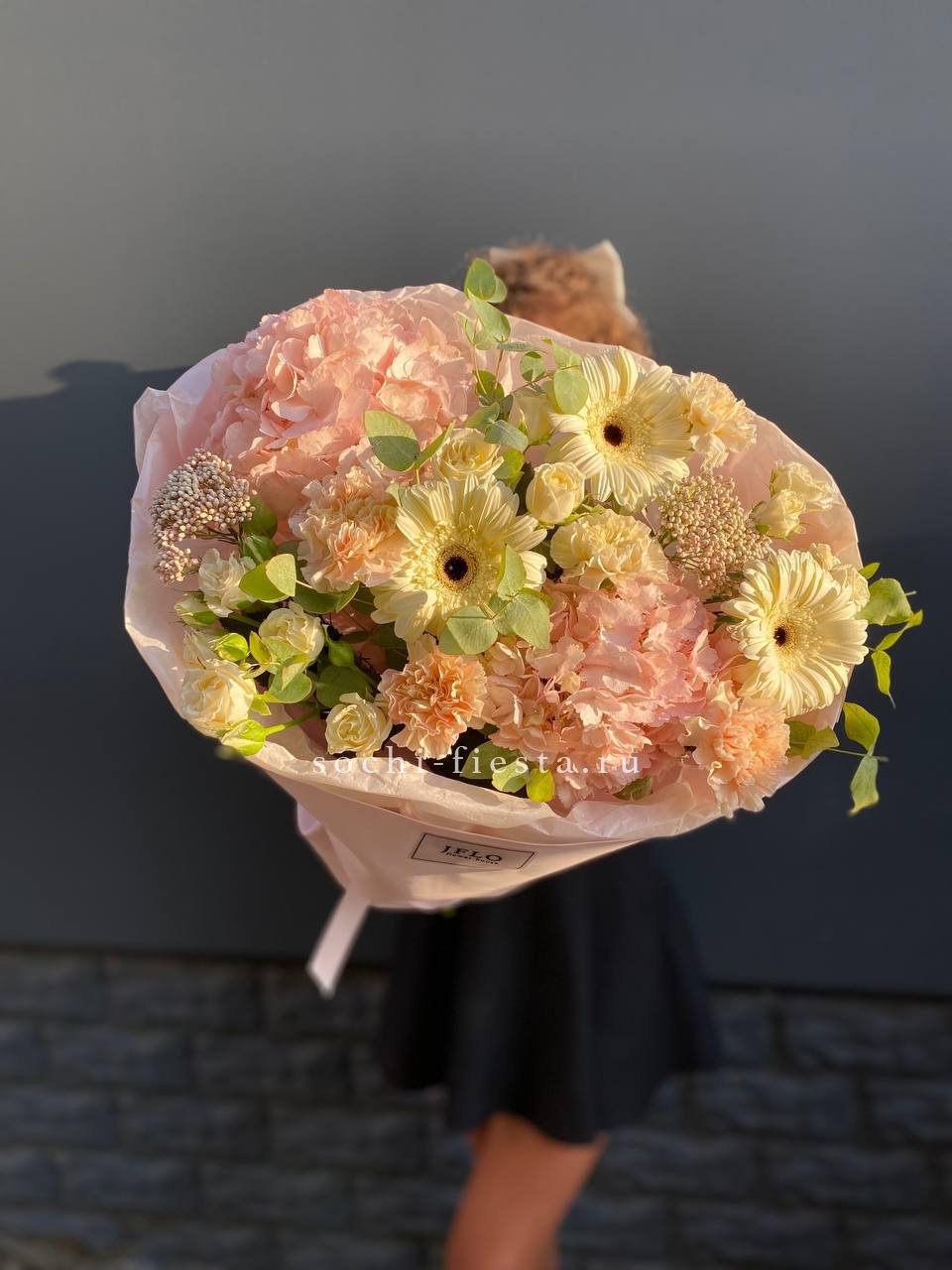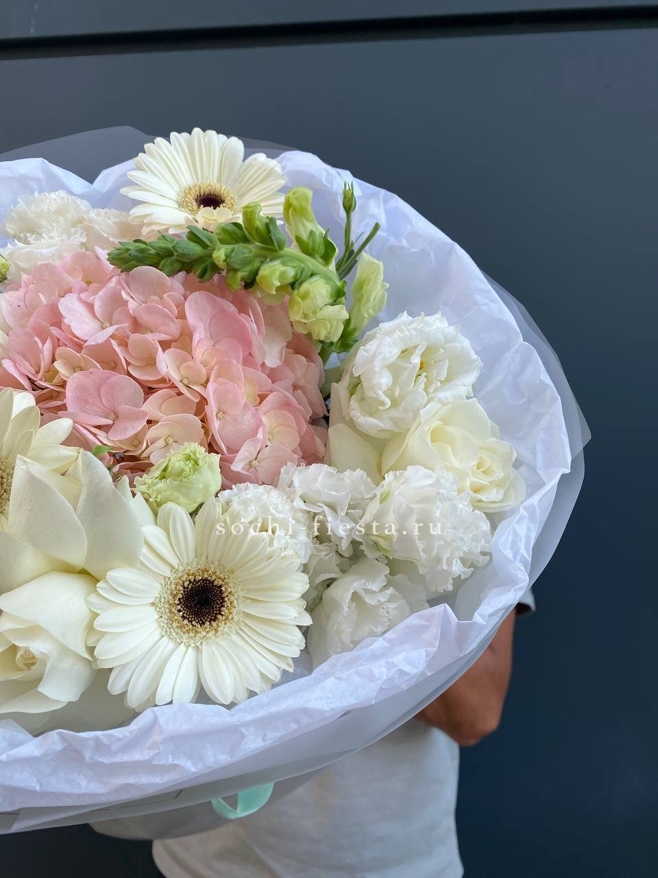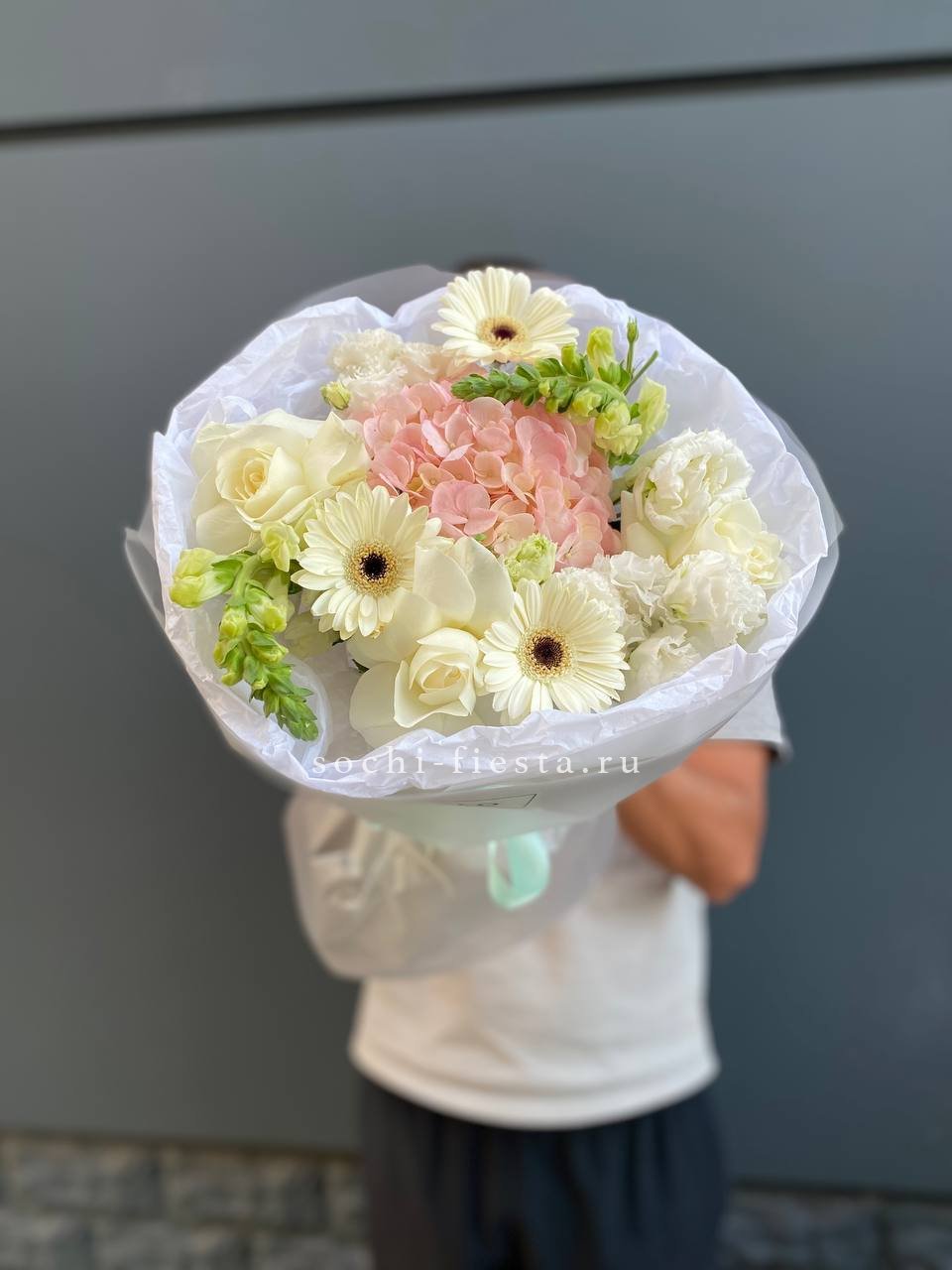 гербера, роза, антиринум(возможна замена), гортензия, эустома, упаковка.