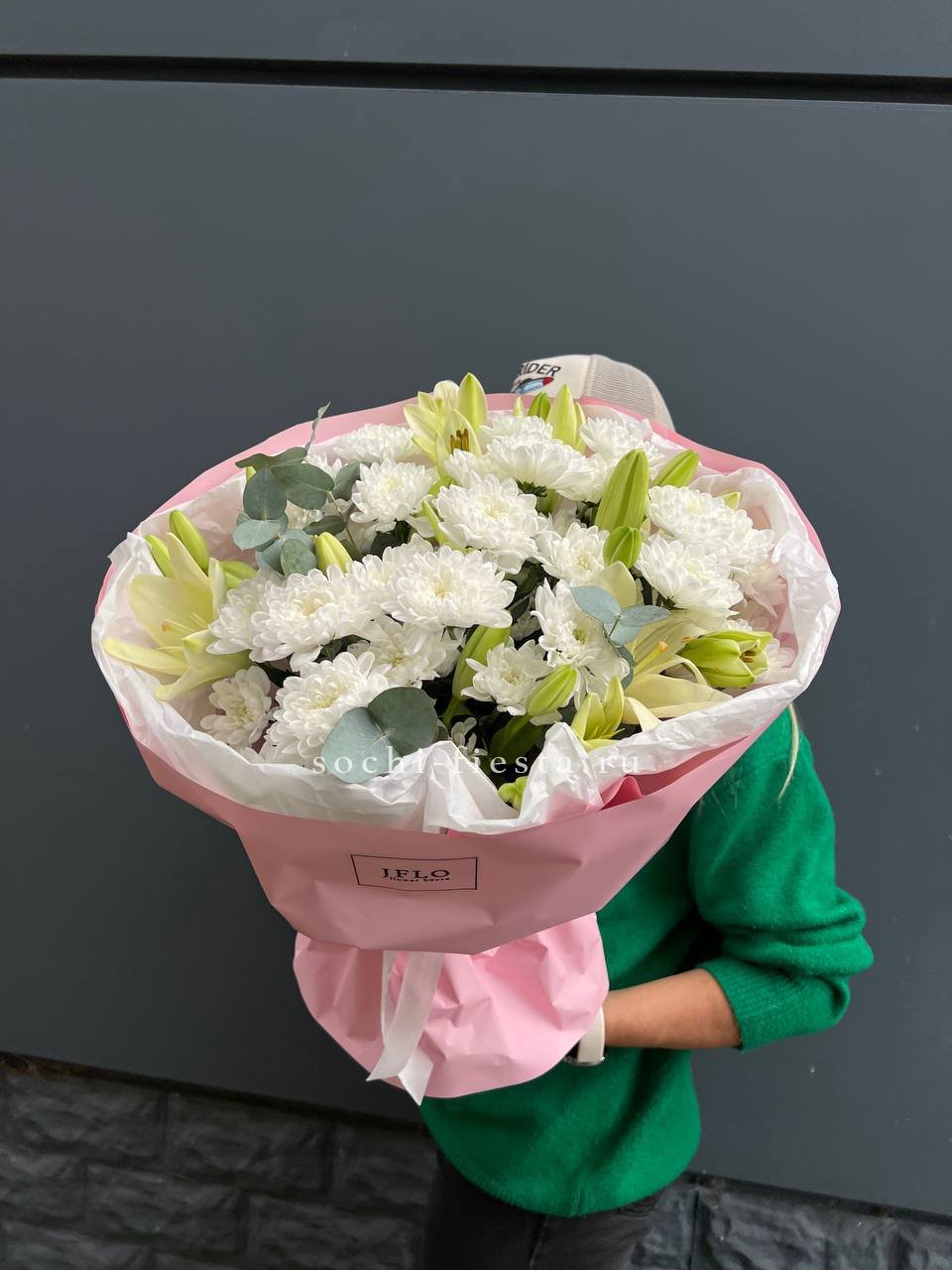 Погрузитесь в облако нежности и аромата! Этот восхитительный букет объединяет пышные шапки хризантем, изысканные бутоны лилий и свежий эвкалипт. Сочетание текстур и деликатных оттенков белого создает ощущение легкости и свежести. Это идеальный подарок для выражения самых светлых и теплых чувств, который растопит любое сердце и наполнит дом чудесным запахом.