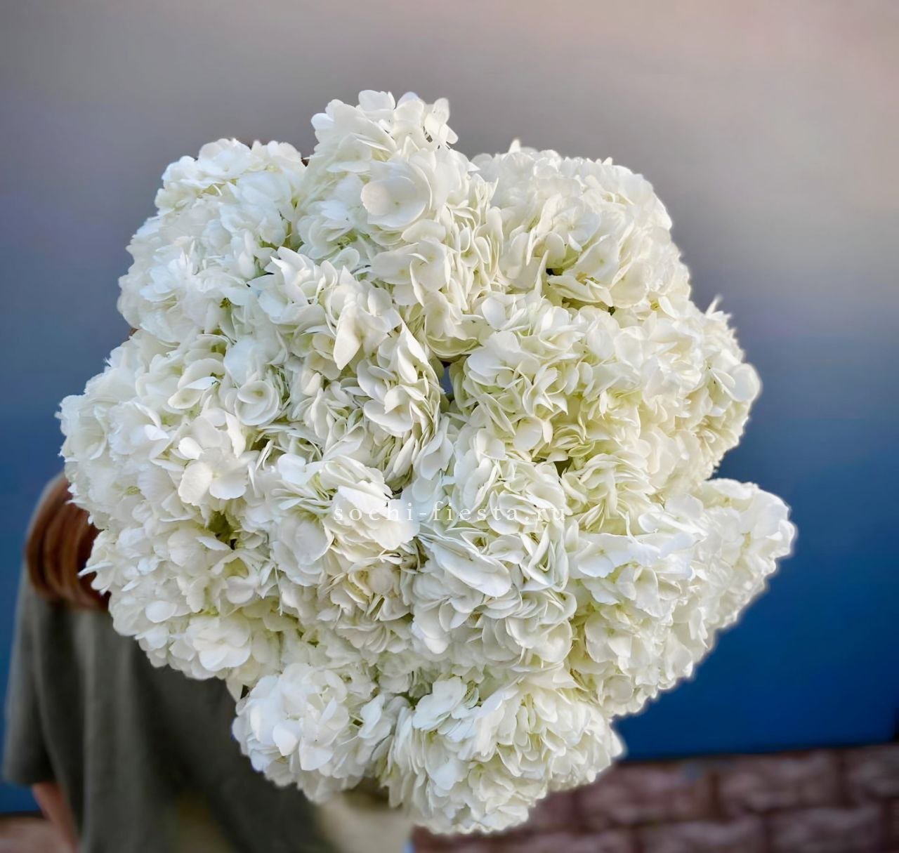 Пышные головки гортензии задают объём, а вывернутые розы добавляют воздушности всей форме. Лиловые оттенки переплетаются с нежной зеленью, создавая мягкий переход от насыщенного к светлому.