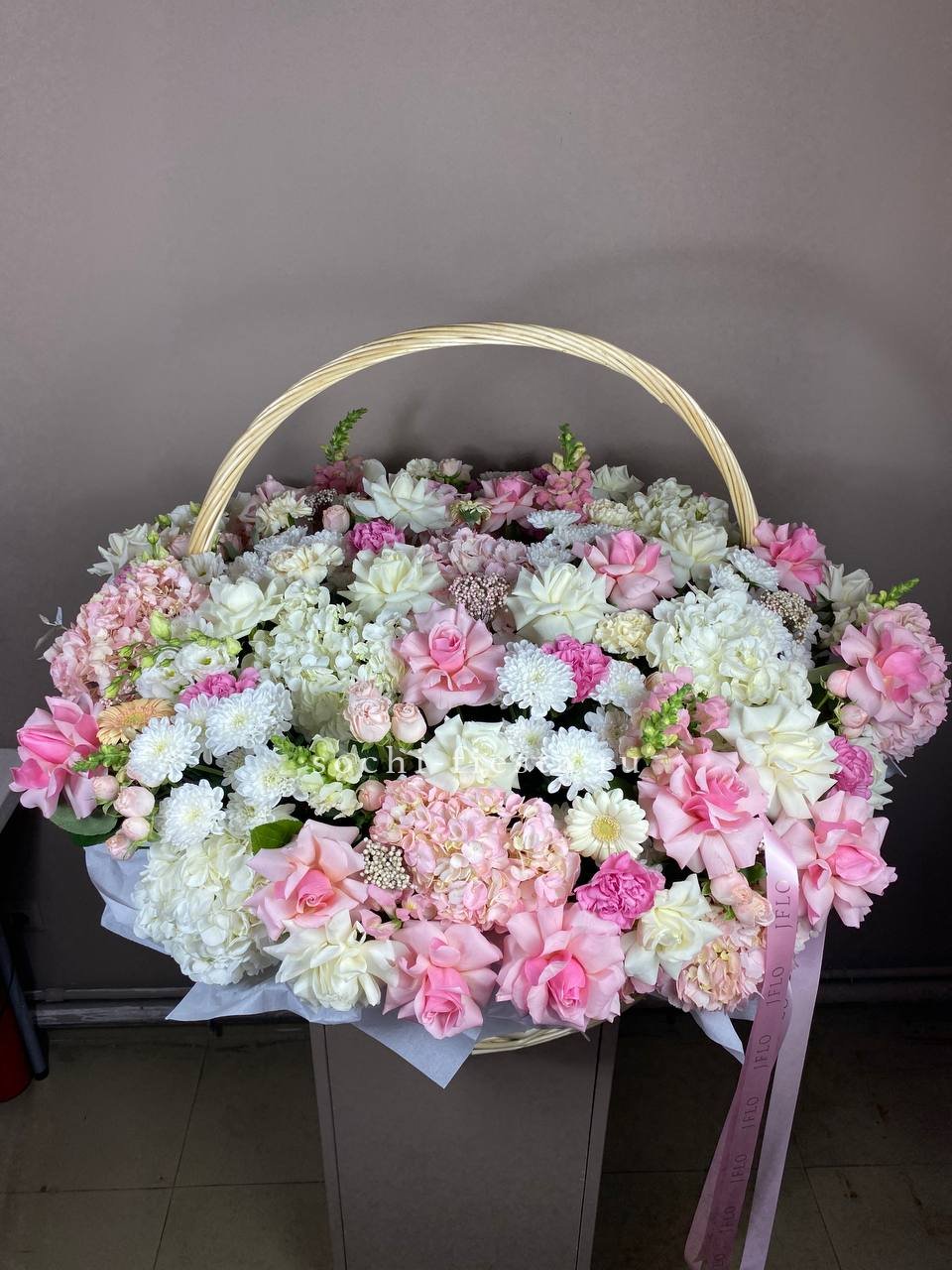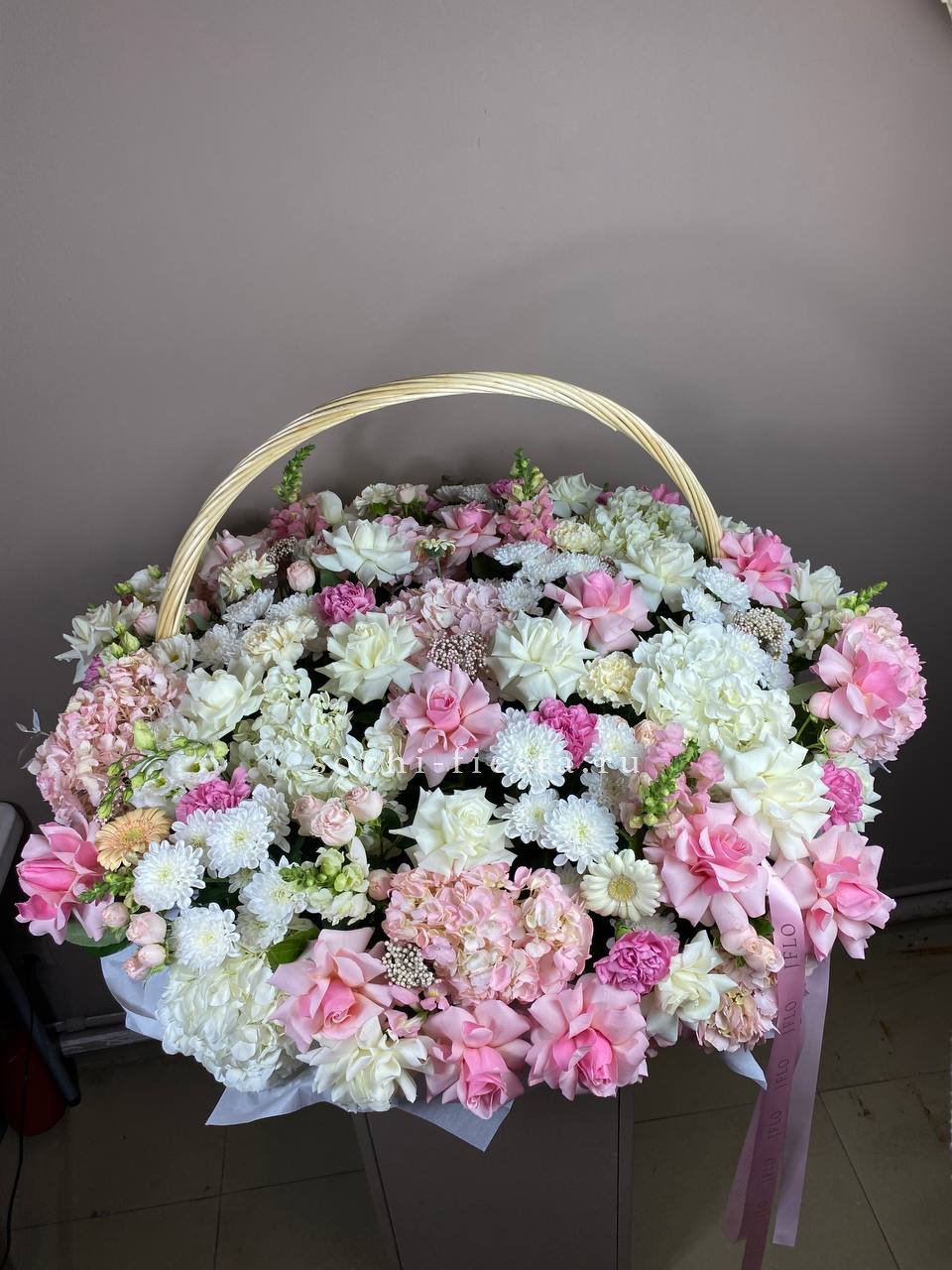 гортензия- 29 шт., дизайнерское оформление По желанию заказчика, композицию можно оформить в корзину.