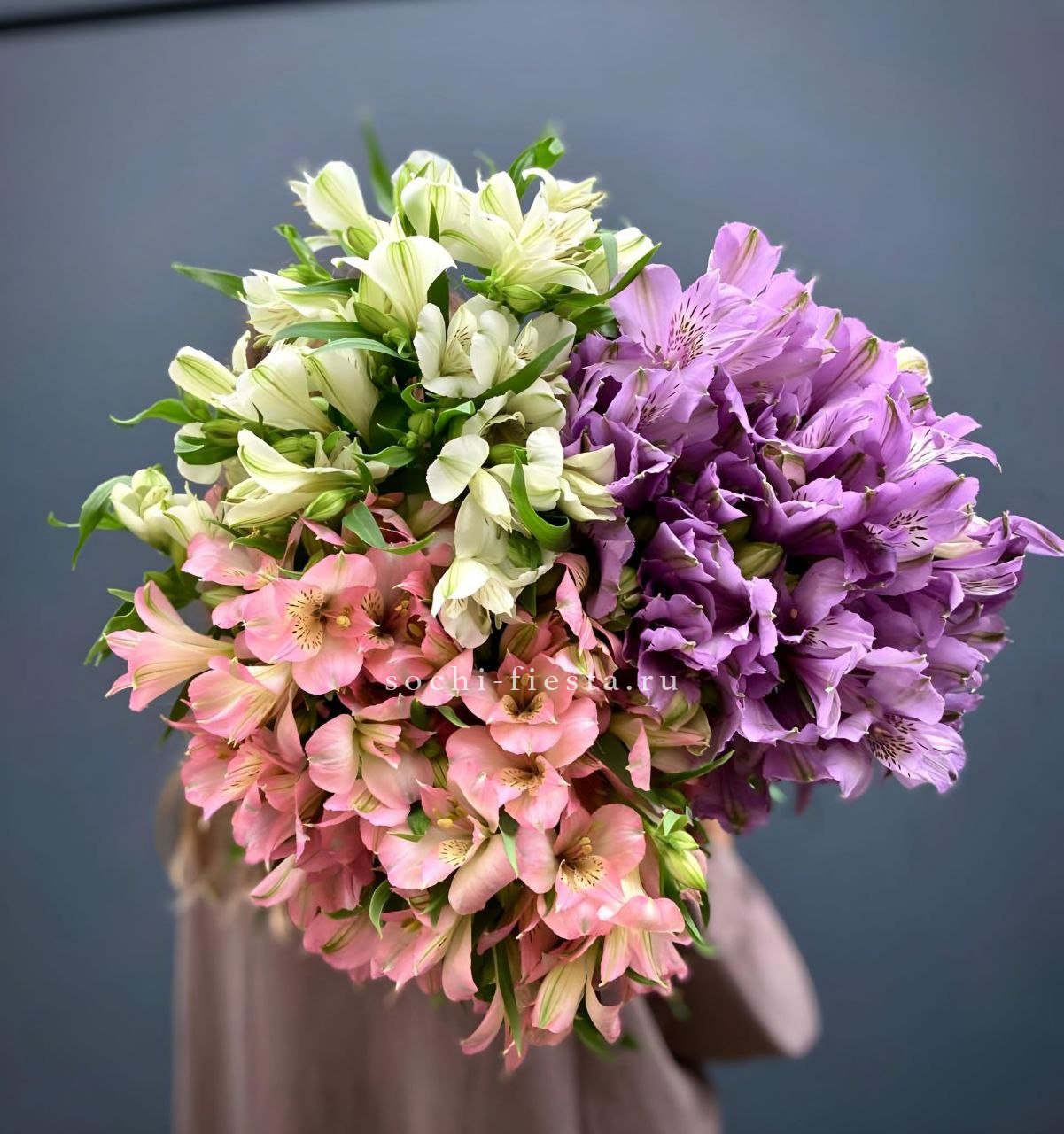 на выбор количество альстромерии, лента На фото - 29 шт.