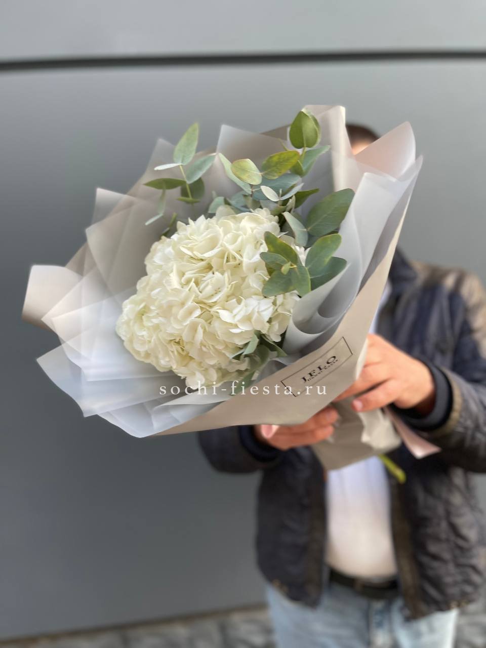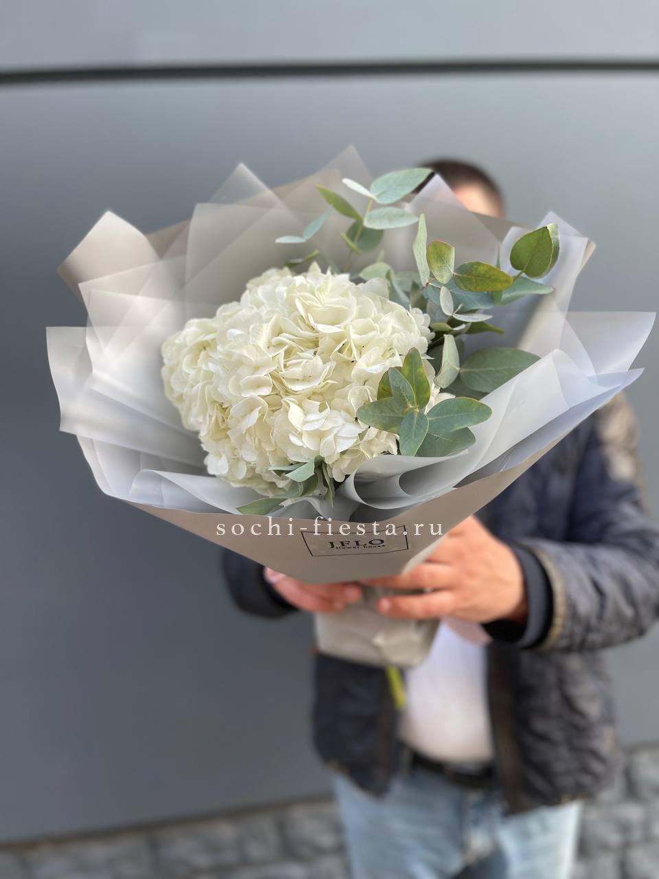 гортензия, лента, дизайнерская упаковка Цвет гортензии на выбор