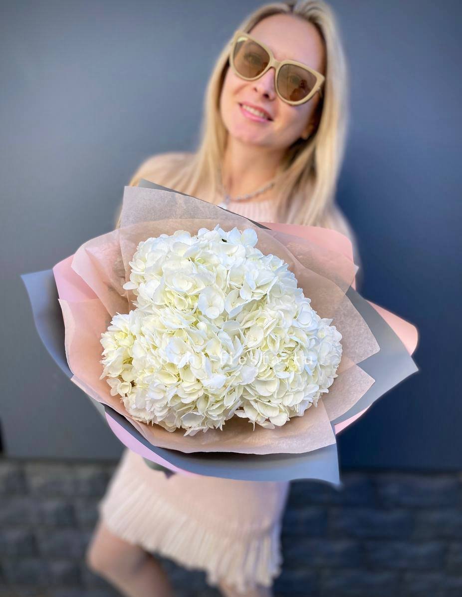 Для заказа товара "Букет из трёх белых гортензий" с доставкой в Магнитогорске нажмите в корзину