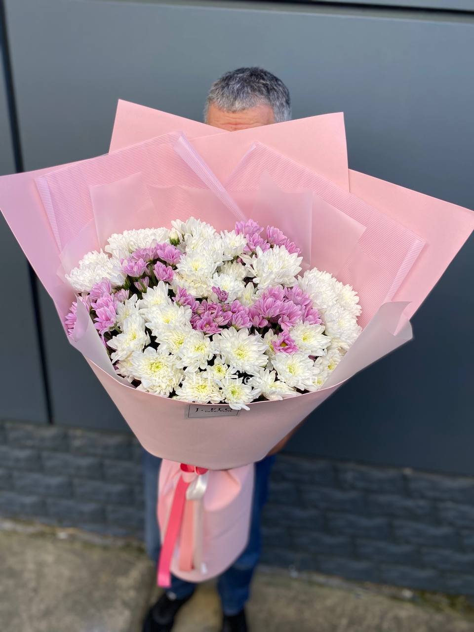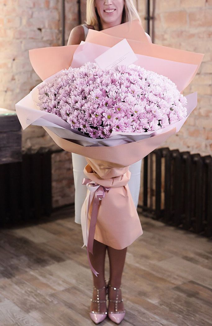 Fifteen веток кустовой хризантемы образуют пышное облако из множества мелких бутонов. Простая упаковка не отвлекает от густоты соцветий и их природной фактуры. Букет долго сохраняет свежесть и объём.