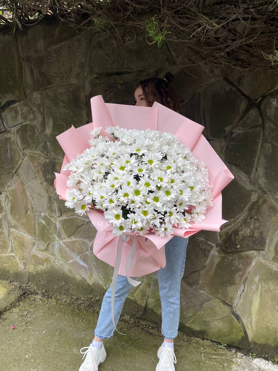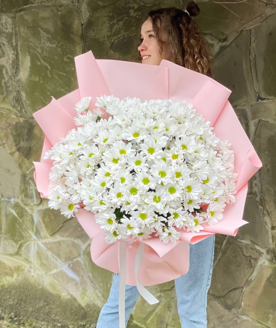 хризантема кустовая - 11 шт., лента, дизайнерская пленка.