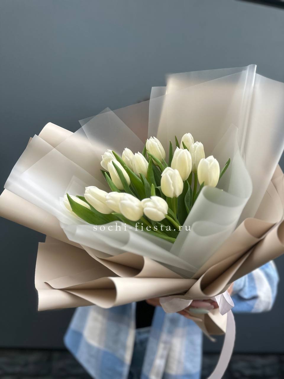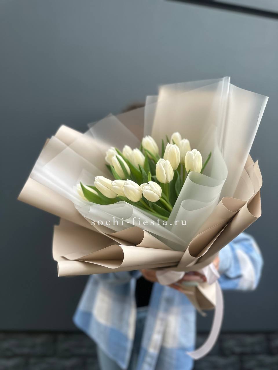 изначальная цена указана за букет из 15 тюльпанов Состав букета на фотографии: 35 тюльпанов, лента, упаковка.