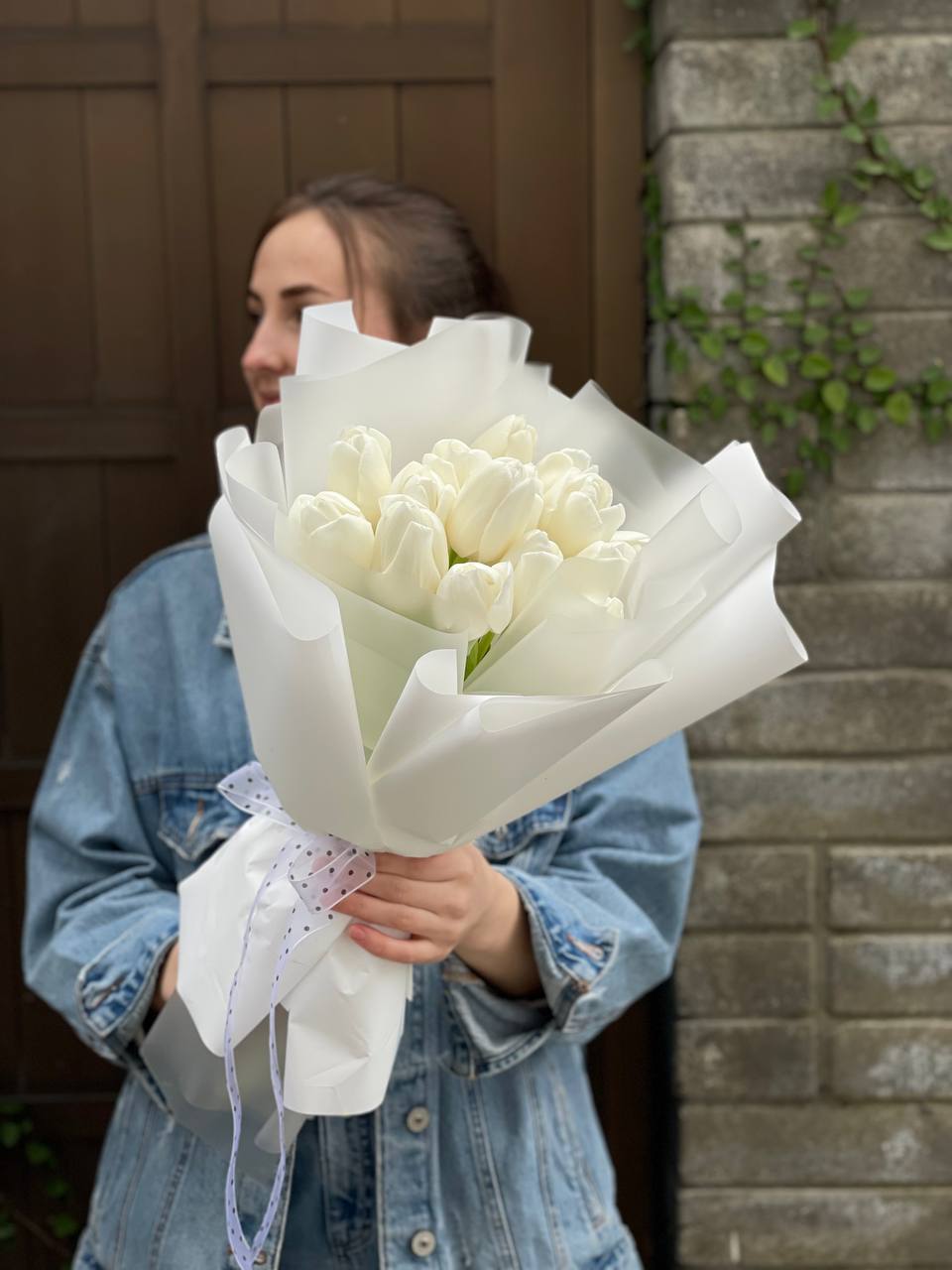 изначальная цена указана за букет из 15 тюльпанов Состав букета: от 15 тюльпанов, лента, упаковка.