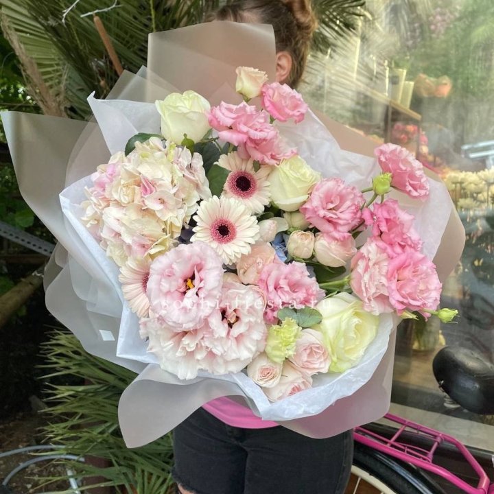 - Редкий состав — David Austin, ранункулюс, анемоны, сезонные пионы.
