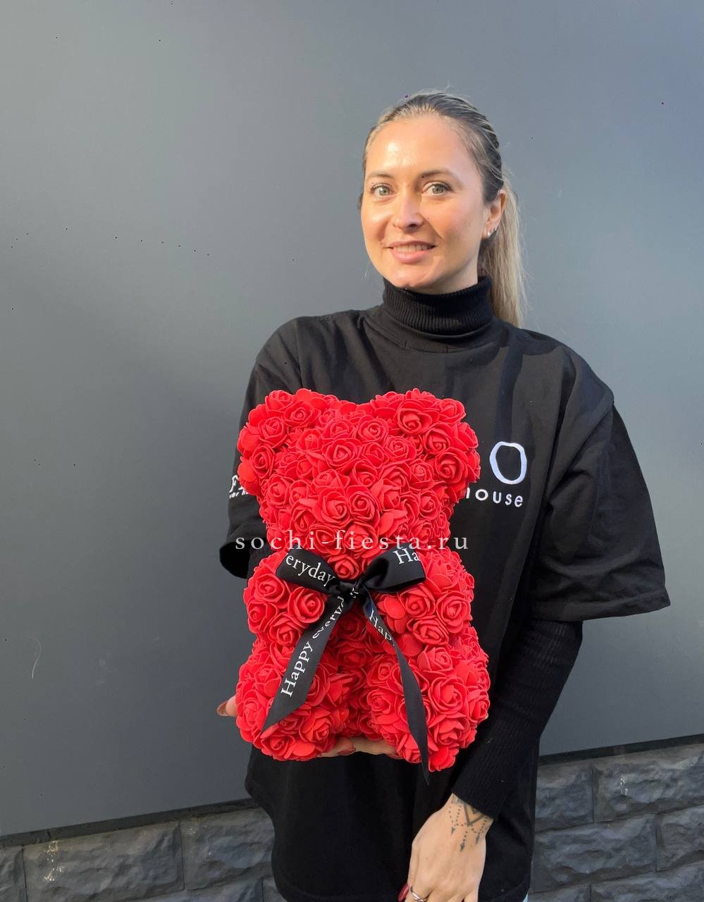 Медведь из роз красный