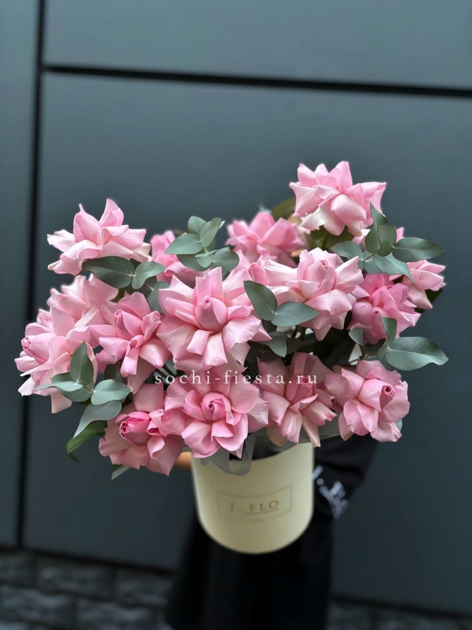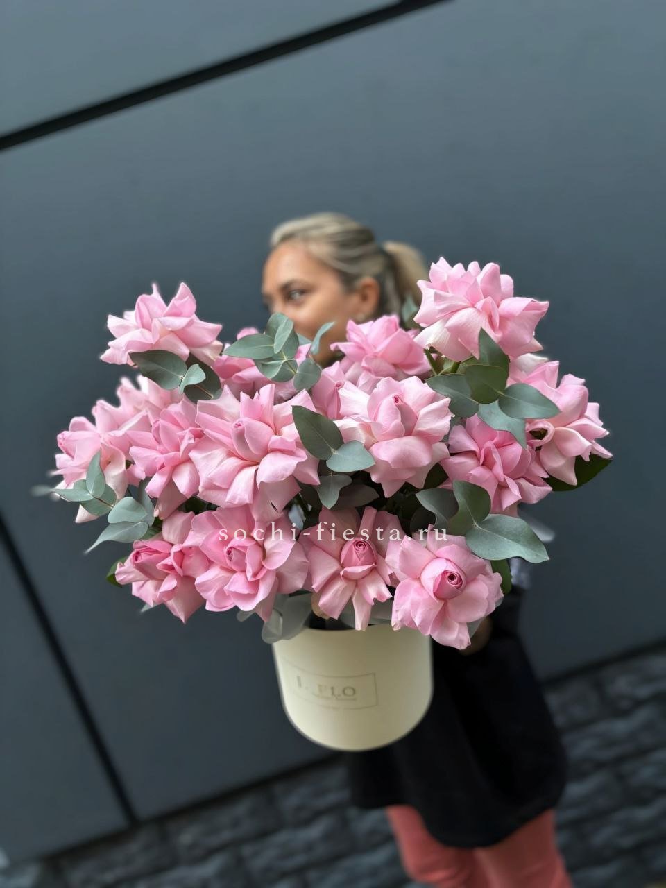 пионовидные кустовые розы бомбастик, гортензия, оазис, тишью, лента.