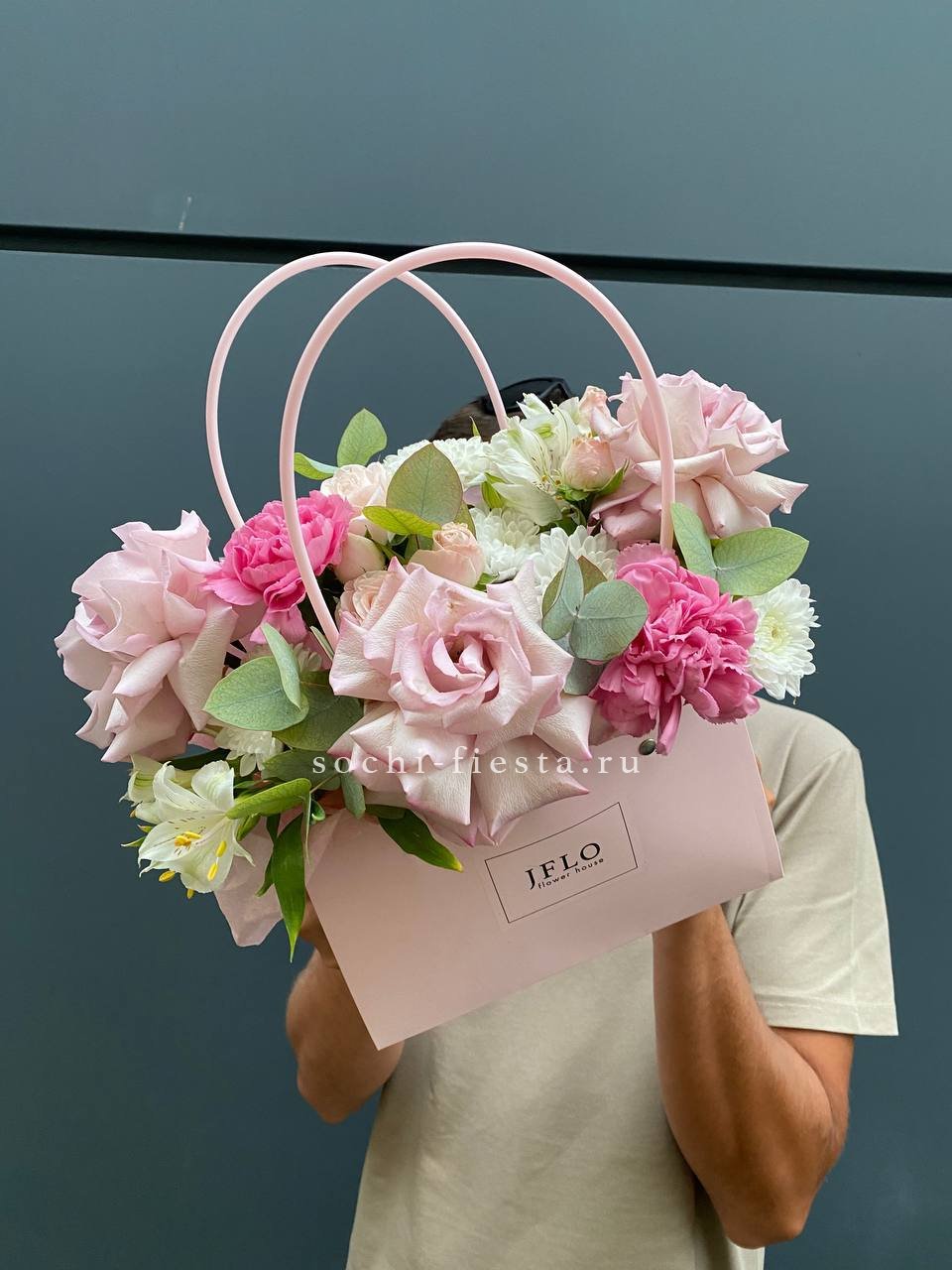 Компактная сумочка в двух оттенках объединяет цветы с мягкими переходами тонов. Форма держится плотно и естественно.