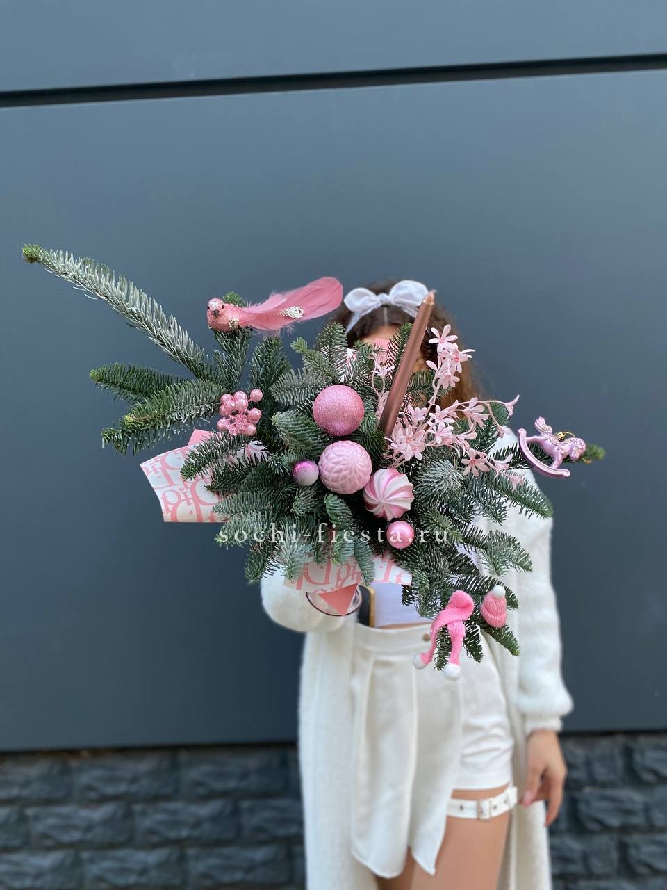 нобилис, бокал, оазис, свечи, новогодние игрушки, декор ВНИМАНИЕ! Готовая композиция (декор) может иметь незначительные внешние отличия от примера на фотографии.
