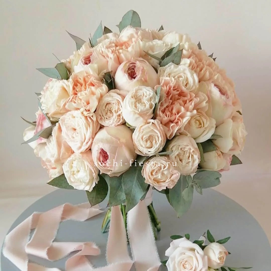Кремовые и белые оттенки перетекают друг в друга, создавая мягкий переход без резких границ. Эвкалипт и дизайнерская упаковка завершают образ.