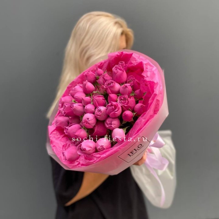 Заказ оформляется на сайте, в Телеграм-канале или по телефону. Моно-букеты 25 и 51 роза всегда в наличии. Специфические сорта, длинные стебли, пионовидные — предзаказ за 2-3 дня.
