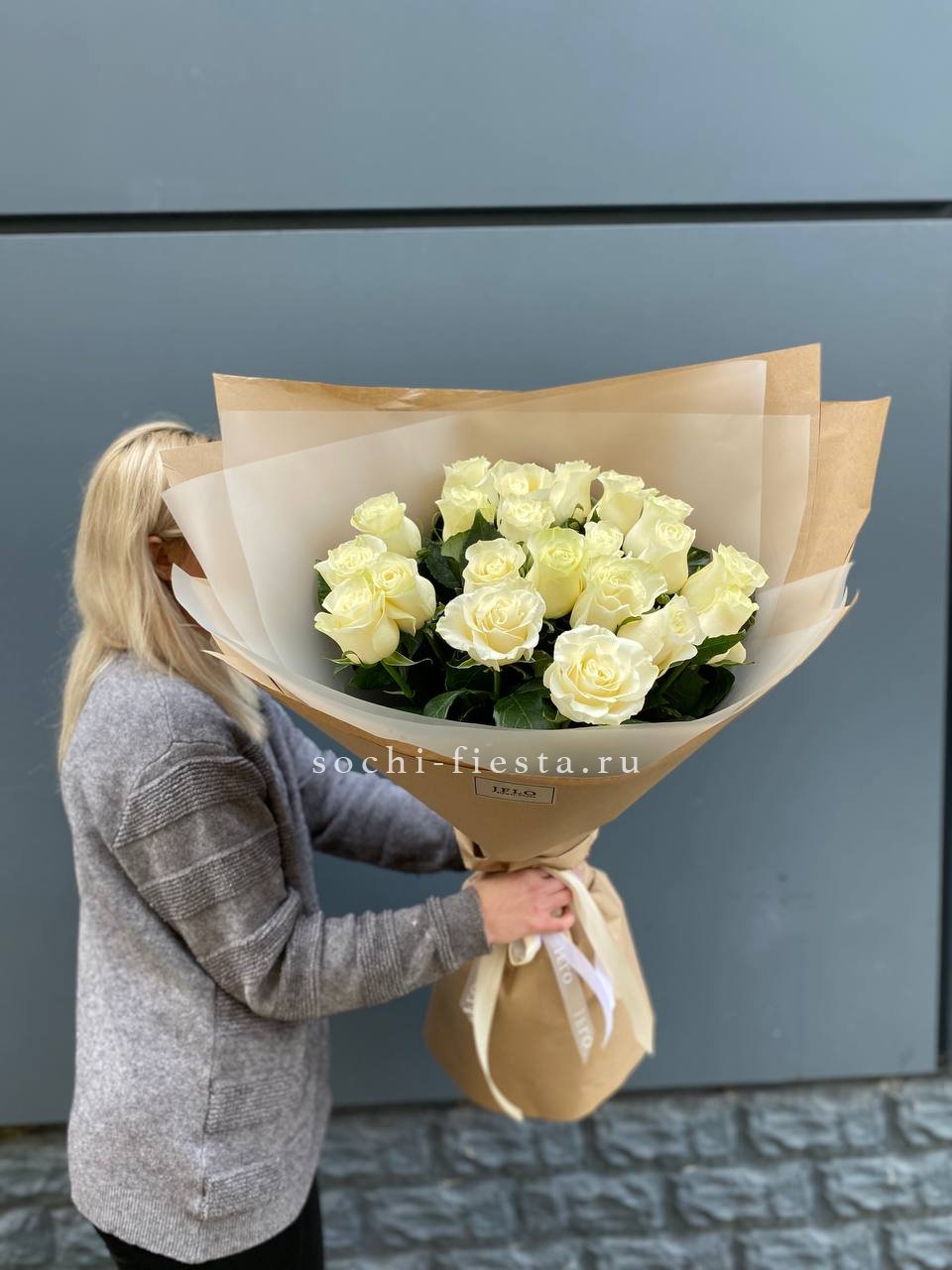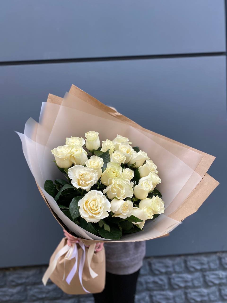 белые розы 35 шт., лента, упаковка на выборВы можете выбрать любое количество.
