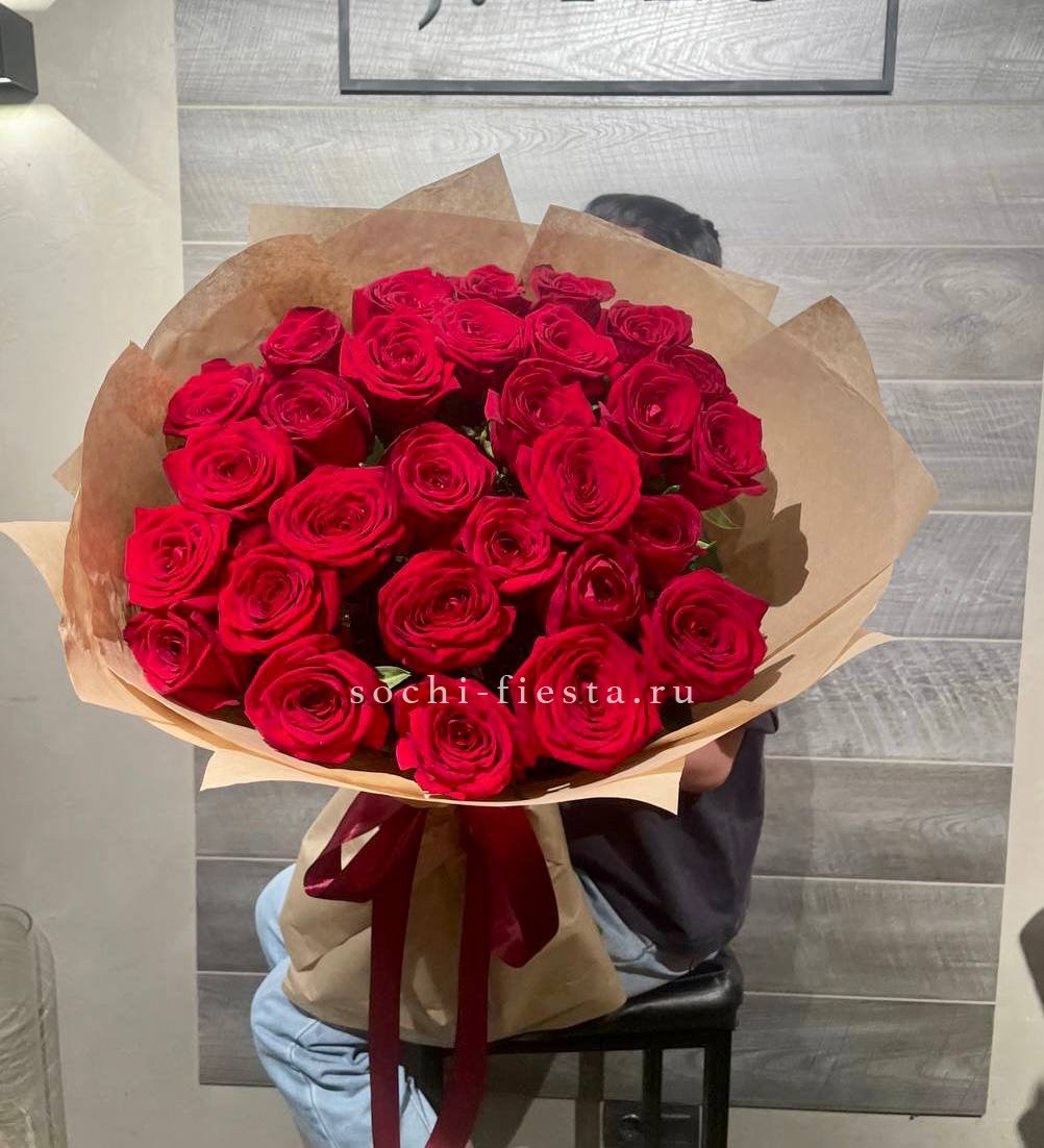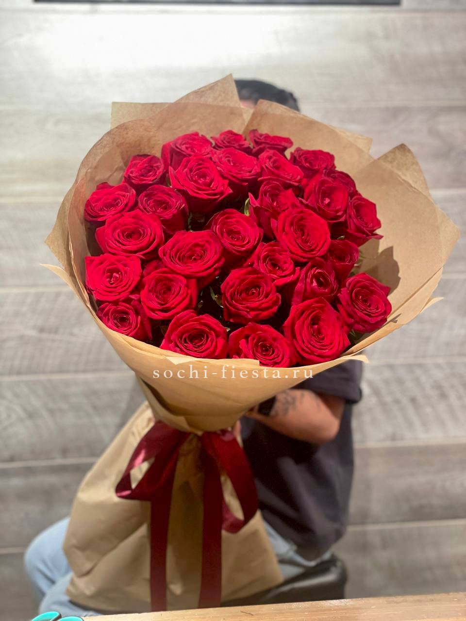 Классический красный букет из двадцати одной розы впечатляет своим присутствием и уверенной подачей. Дизайнерская упаковка завершает образ и придаёт композиции современное звучание.