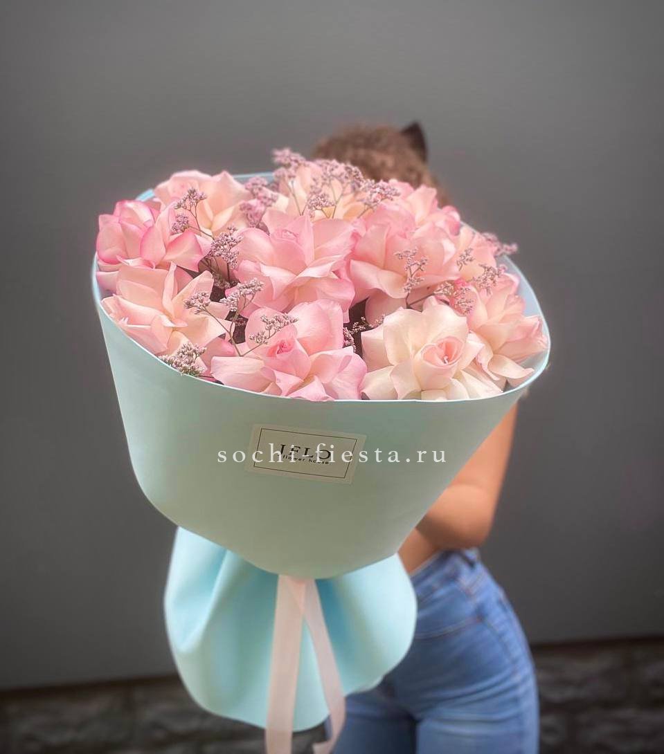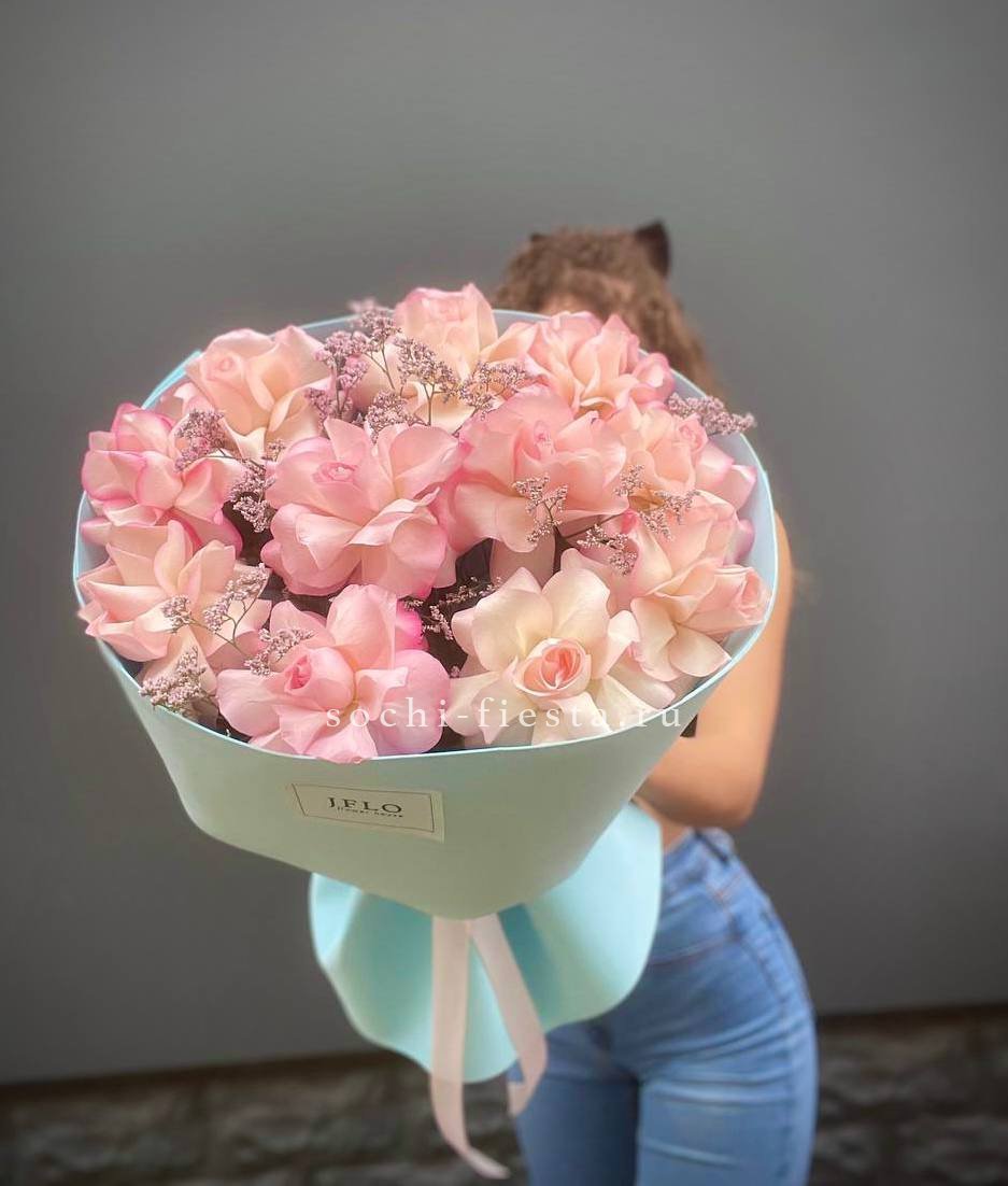 11 французских роз, лимониум, дизайнерская упаковка.