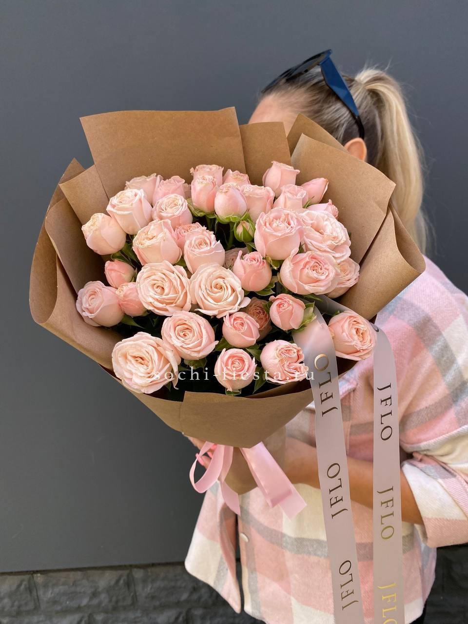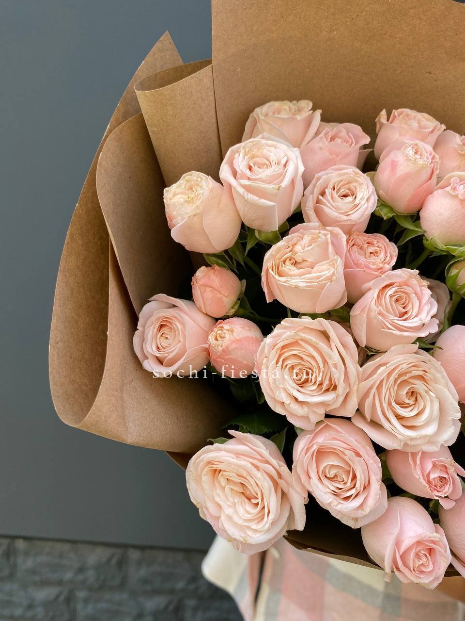 Для заказа товара "Кустовые розы Бомбастик в крафте" с доставкой в Магнитогорске нажмите в корзину
