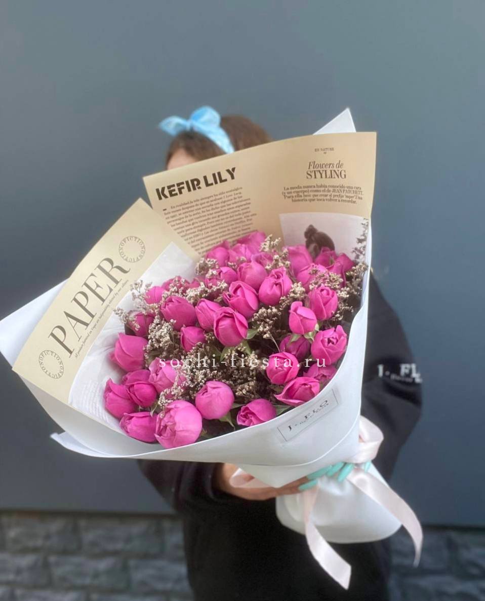 15 кустовых роз спрей, лента, упаковка на выбор.