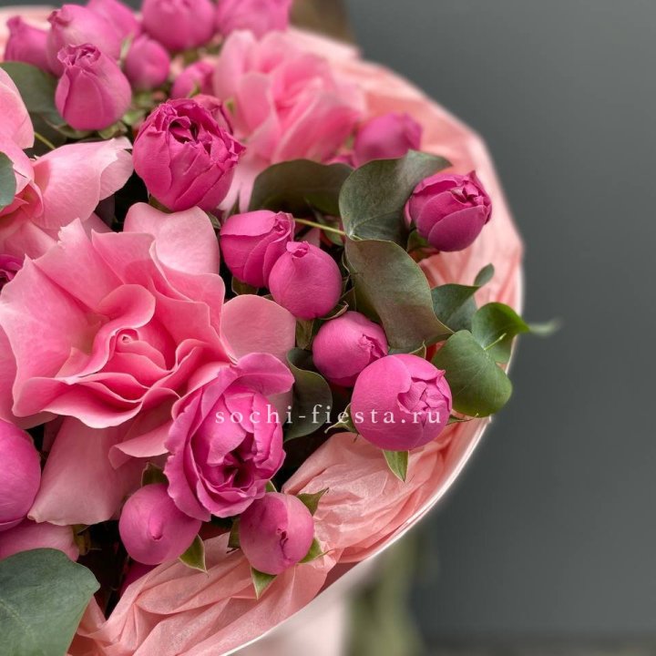 Зима и лето в Магнитогорске — розы и хризантемы как основа. Эти виды стабильны в поставках круглый год. Флорист дополняет их сезонными акцентами: хвойные ветви зимой, открытая эустома летом. Сборный букет в любое время года выглядит живым и актуальным.