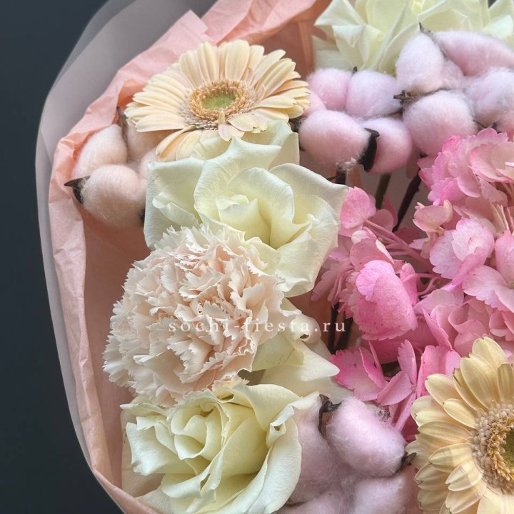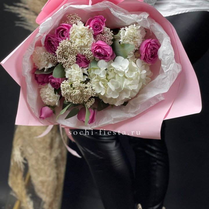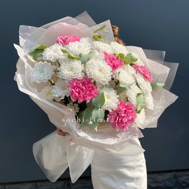 Зима и лето в Магнитогорске — розы и хризантемы как основа. Эти виды стабильны в поставках круглый год. Флорист дополняет их сезонными акцентами: хвойные ветви зимой, открытая эустома летом. Сборный букет в любое время года выглядит живым и актуальным.
